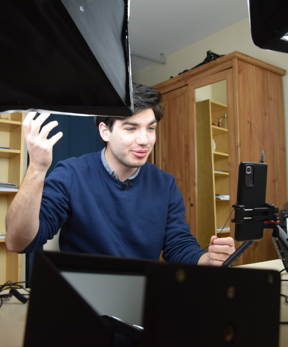 La mèche toujours en place, le regard bleu perçant, le ton enjoué mais pédagogue et le sourire facile, Victor, alias Le Catho de service sur les réseaux, c'est un peu le meilleur ami du catholique qui débute. Son public ? « Ceux qui se posent la question de Dieu, qui acceptent ça, et pour qui c'est un trop gros pas d'aller voir un prêtre, d'entrer dans une église. »